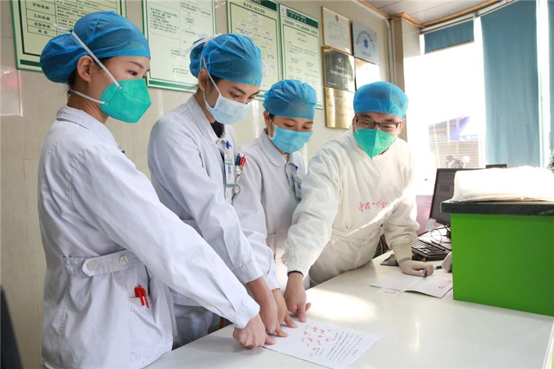 一附院东葛院区呼吸内科医务人员写下了这样一份请战书:“大疫当前,众志成城,我们坚决支持医院倡议,主动报名请求参战,枕戈待旦志祛瘟神,随时服从医院派遣,齐心协力共赴危难,尽力帮助疫区患者,誓言战胜病魔疫鬼,不辱使命终将凯旋!”