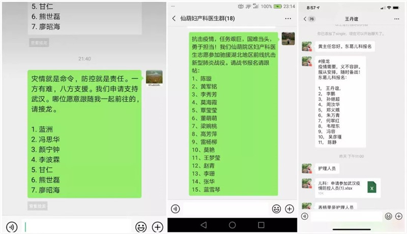 像这样的请战书与接龙报名还有很多很多。报国赴危难,古来皆共然。面对病毒,避险原是本能,但这一封封请战书,一个个请战书上的红手印,没有华丽的辞藻,没有推脱的借口,代表着一个个“逆行者”滚烫的心,彰显着医者仁心的使命与担当。这种舍小家、保大家的大爱精神在全院引起强烈反响,更多医护人员表示,非常时期,将以更饱满的工作热情投入到平时工作中去。