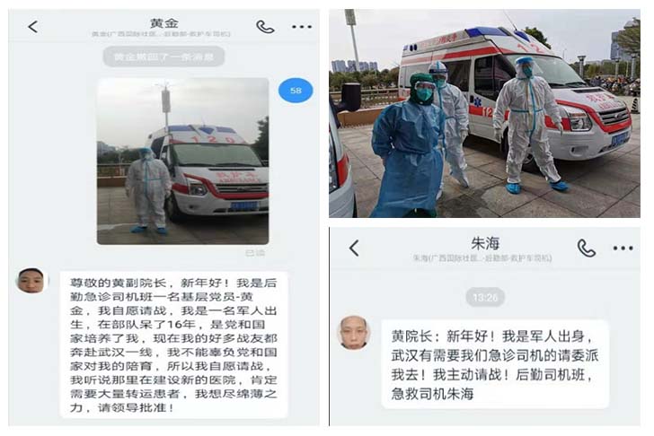 除了在一线的共产党员外,医院的行政、后勤等多名共产党员都向医院党委递交了“请战书”。急诊司机黄金是有16年党龄的共产党员,他说,是国家培养了我们,现在国家需要我们,我们定会全力以赴。