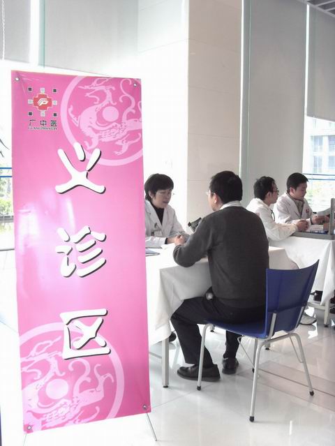 2009年11月18日,一附院全国名老中医黄瑾明教授一行10人在广西开发银行义诊,备受行内职员青睐。