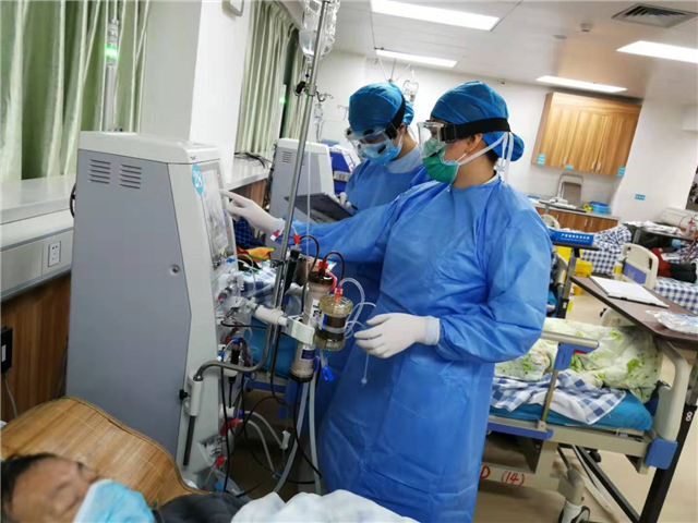 新型冠状病毒(COVID-19)的突袭,让医护人员来不及吃上年夜饭,同时间赛跑,与病魔较量。全国号召不外出、多隔离的情况下,有这样一个科室,无论春夏秋冬、国庆还是春节假期,她们从不曾停歇。血透医护人员必须逆行而上,坚守在血液透析室的工作岗位上,守护透析肾友的安全。