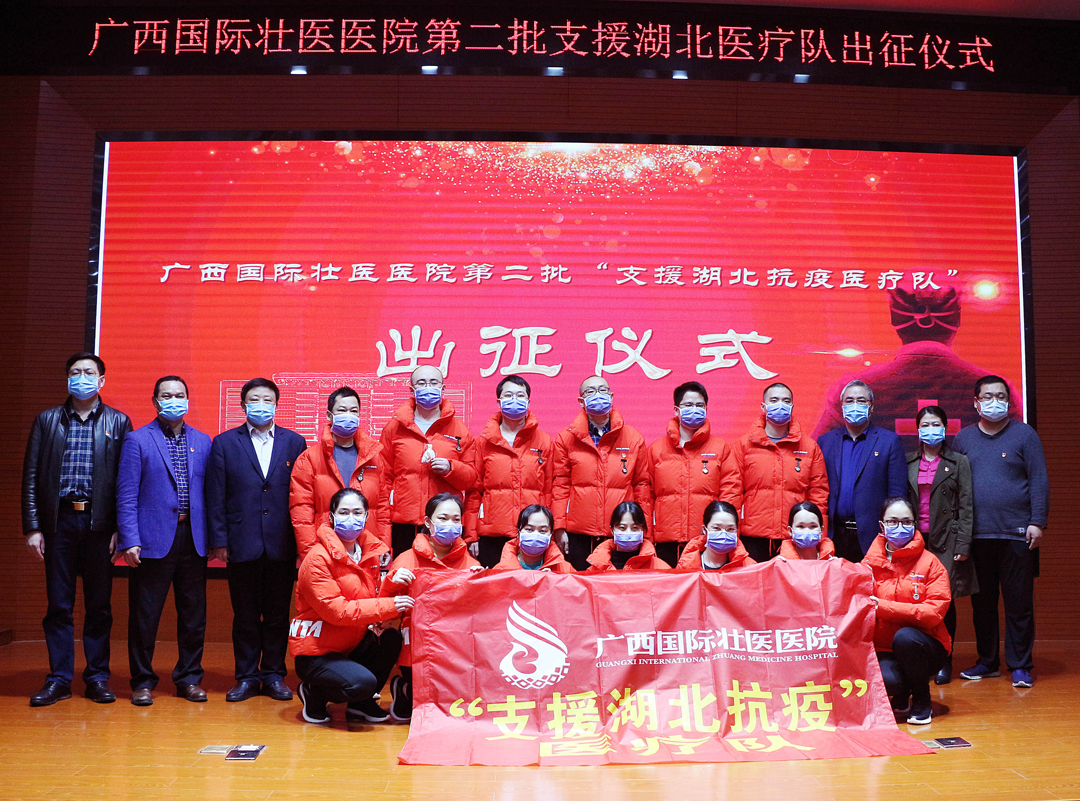 一个支部就是一个战斗堡垒。在国壮第二批援助湖北医疗队出征仪式上,国壮成立了中共广西国际壮医医院援助湖北医疗队临时支部委员会,希望以党支部的凝聚力,团结医疗队员,克难攻坚,让党旗在抗疫一线高高飘扬,打赢这场抗疫阻击战。