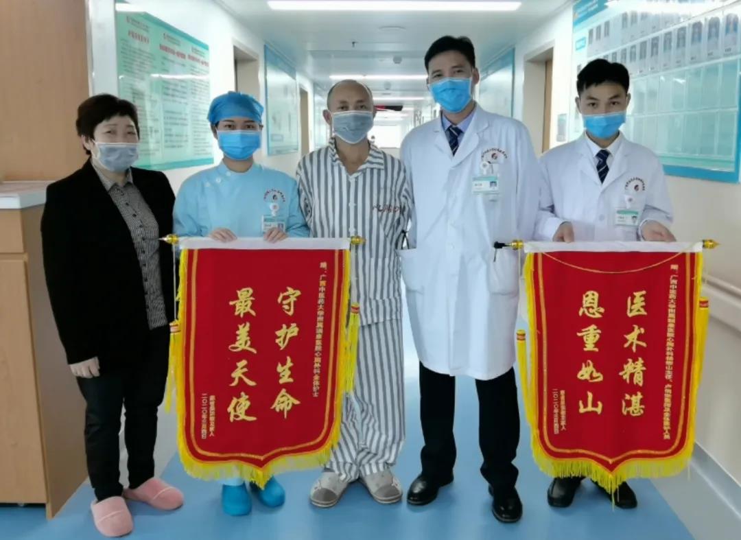 3月4号下午,来自百色市凌云县的吴宗敏及家属向附属瑞康医院胸心血管外科的医护人员们送上了锦旗,感谢他们及时发现自己身体上的大问题,挽救了他的生命。