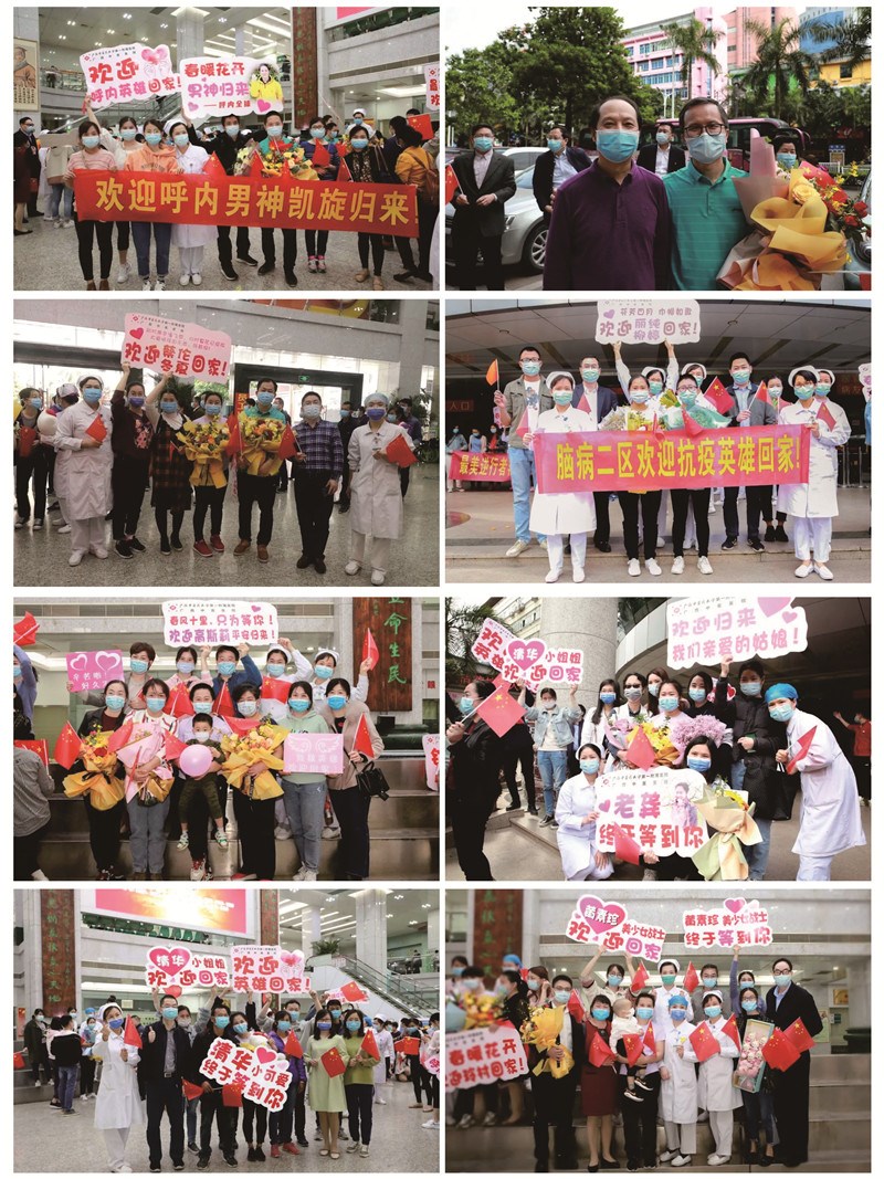 桂雄斌在迎接时激动地对队员们说:“今天是大家结束休整,胜利回家的日子。广中医为你们感到骄傲,欢迎大家平安回家!”