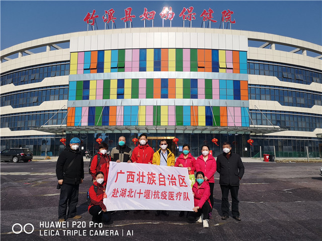 广西医疗队员在竹溪县妇幼保健院门口合影