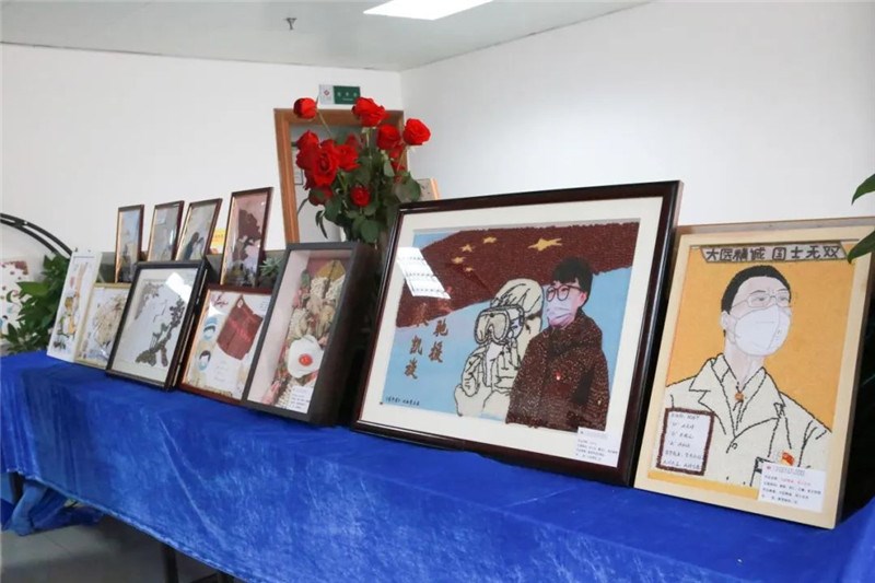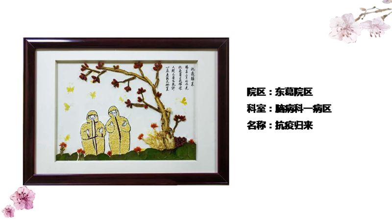 疫线传薪火,仁心济苍生。以抗疫故事为主线的中药叶画作品经过精心设计和布置,一一呈现于医院护士节表彰大会现场,传播了一份仁爱、坚持和不悔的精神。