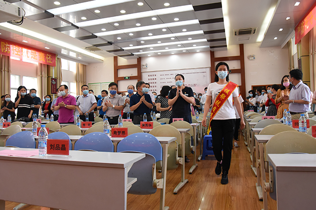 大会伊始,院领导及各部门(科室)负责人全体起立鼓掌,向列队入场的医院22名援鄂医疗队队员致以最崇高的敬意。