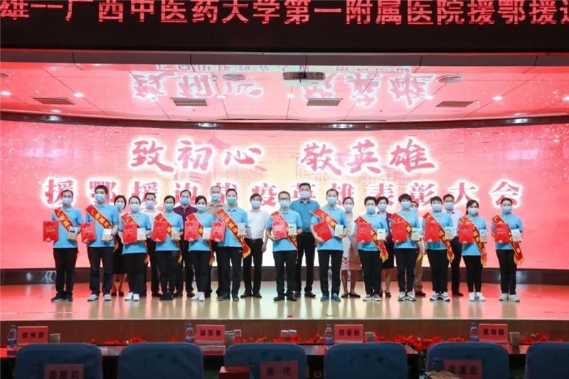 一附院党委书记桂雄斌表示,全体医疗队员战斗在最前线,经受住了严峻考验和战斗洗礼,守护了万家灯火,用心血和汗水换来了湖北人民、广西边境人民的安康,为疫情防控工作作出了重要贡献,是全院广大干部职工的榜样。桂雄斌希望,队员们能珍惜荣誉,以昂扬的斗志在岗位上做出新的成绩;广大党员干部能见贤思齐,用实际行动践行初心使命;全体广中医人能继续筑牢防线,齐心协力打赢疫情阻击战。相信在战疫英雄的带领下,医院也会涌现出许多像他们一样的先行者、先驱者,大家在共同努力下,医院的发展之路会更加宽广和顺畅,必定能创造广中医发展新篇章。