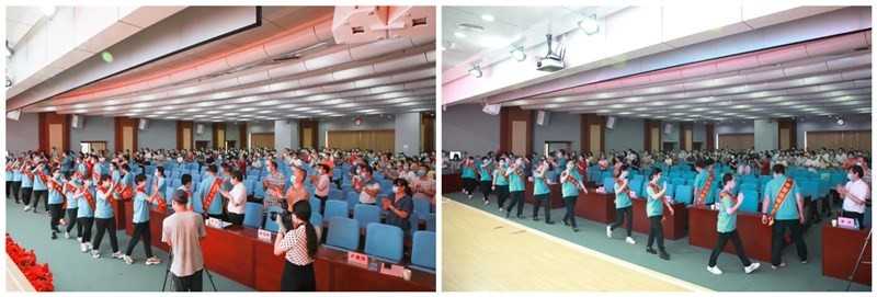 当医疗队员们身着绶带、胸佩党徽,列队走入会场,一附院领导及各部门(科室)负责人全体起立鼓掌,向一附院医疗队队员致以最崇高的敬意。
