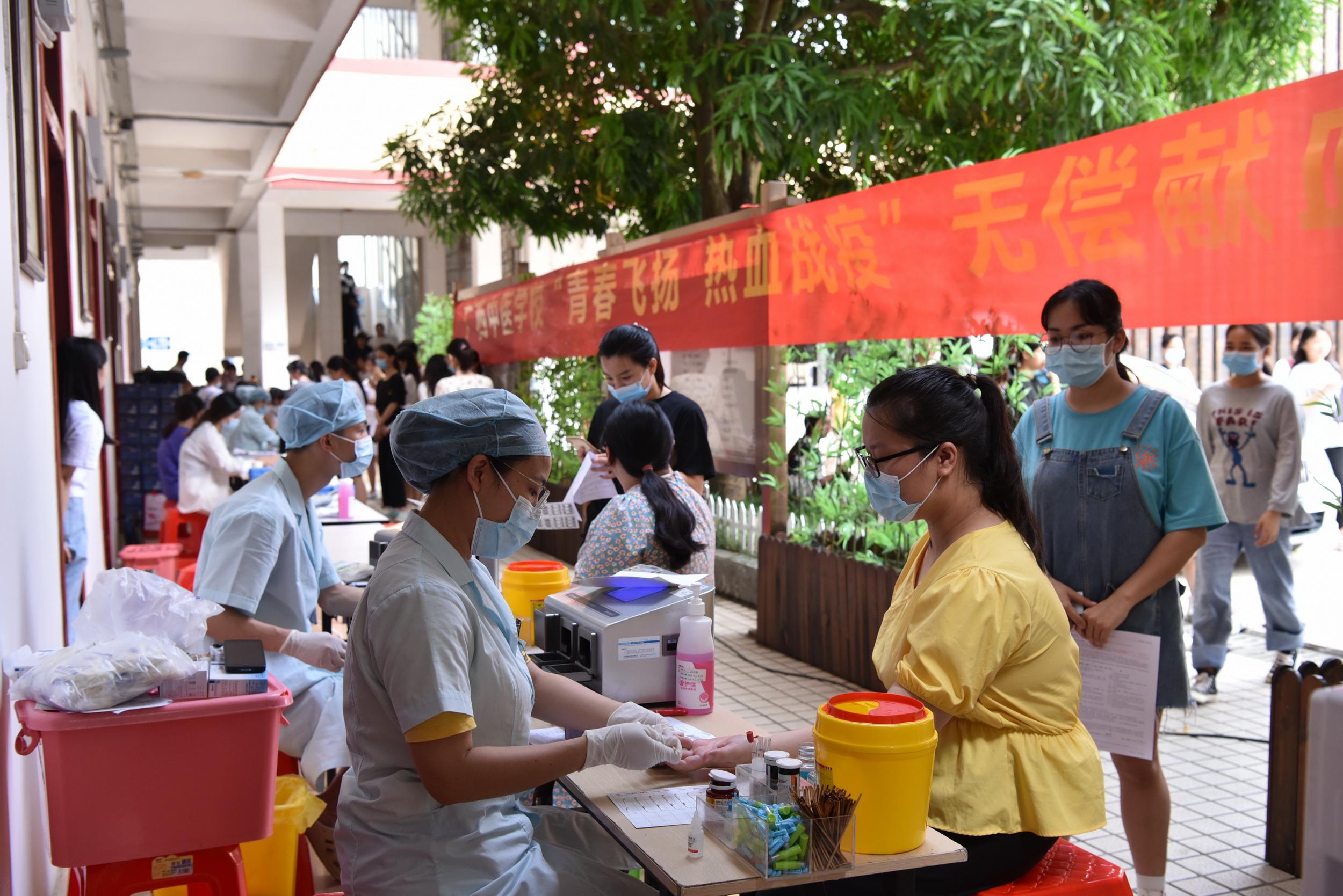 6月16日,附设中医学校联合南宁市中心血站在北湖校区前操场开展了“青春飞扬,热血战疫”无偿献血志愿服务活动。