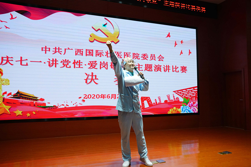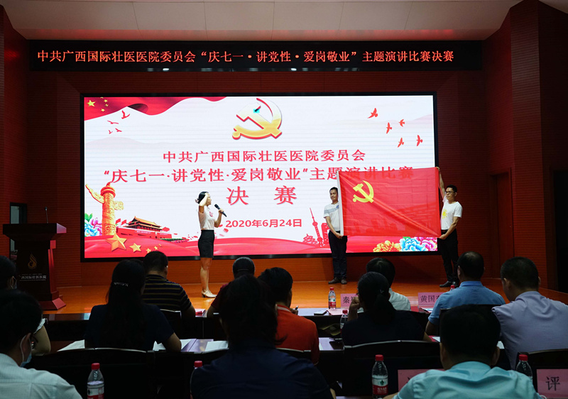 在中国共产党建党99周年来临之际,6月24日晚,附属国际壮医医院举行了“庆七一·讲党性·爱岗敬业”主题演讲比赛决赛。来自医院各基层党支部的14位选手,抒发爱国爱党爱院情,表达爱岗敬业志,向党的生日献礼。