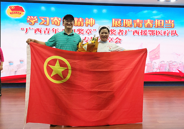 广西青年五四奖章获得者、附属瑞康医院援鄂医疗队员、心血管内科一区护士长黎燕作为广西中医系统及广西第四批援鄂医疗队唯一代表受邀参加活动并分享抗疫经历。