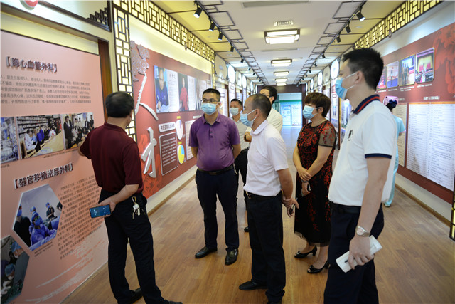 谭正良一行首先到医院国医大师馆、中西医结合转化医学中心、治未病中心、胸心血管外科等科室参观,相关科室负责人向他们详细介绍了科室情况及治疗特色等。
