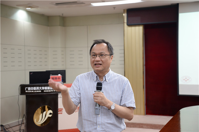 唐友明向大家介绍了施焕中教授在呼吸疾病上的学术贡献。他表示,作为同乡人,施焕中教授不仅是广西人的骄傲,同时他也关心着广西医疗人才的培养与发展。施焕中教授对事业的追求和情怀,值得我们学习,他的经验对今后如何将学科做大做强,如何提高个人能力,提供了非常有价值的思路和启示,希望大家能够珍惜这次讲学,认真学习勤于思考,为医院和个人的事业做出努力。