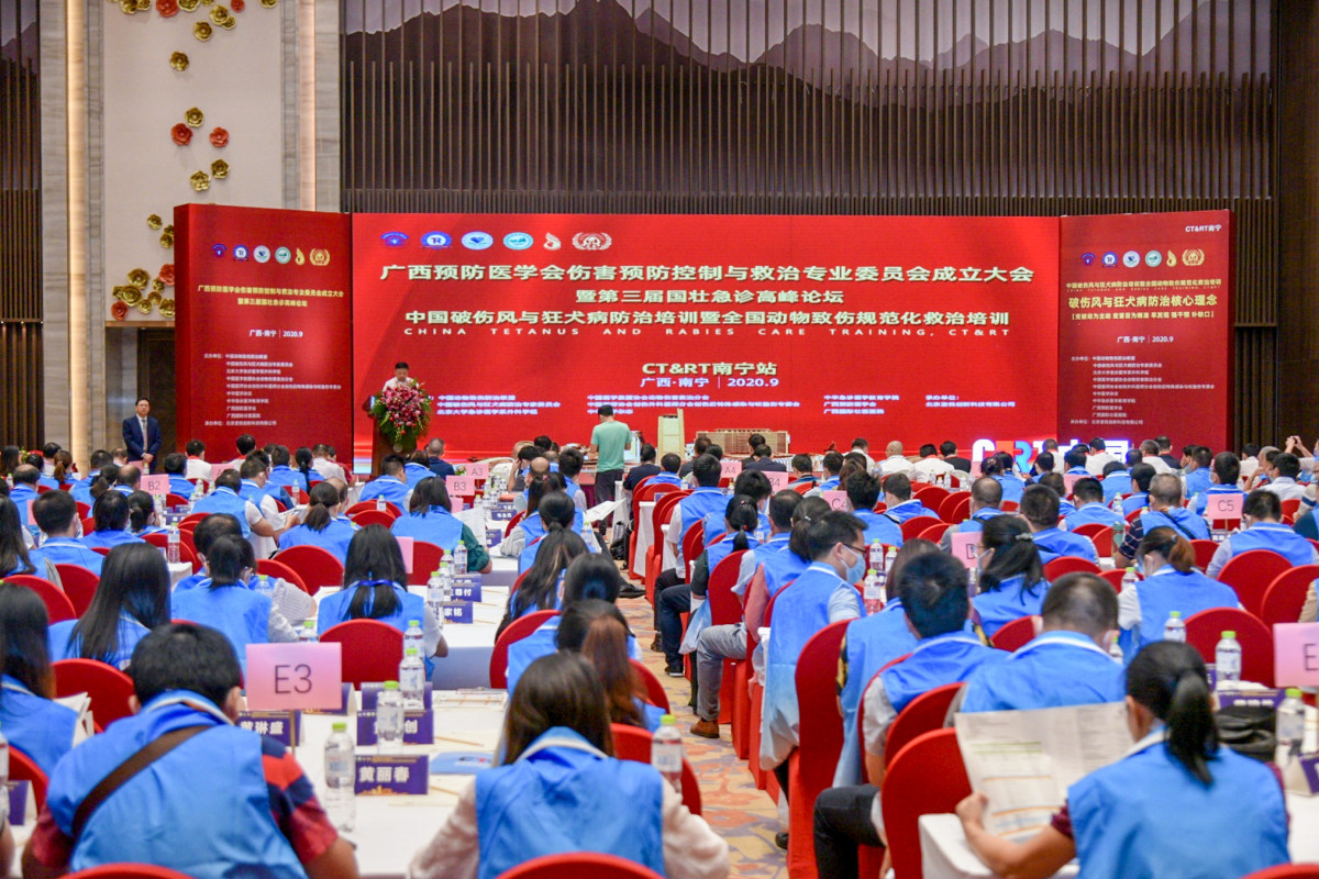 29月19——20日,由广西国际壮医医院等联合主办的“中国破伤风与狂犬病防治培训暨全国动物致伤规范化救治培训CT&RT”在南宁举办。活动采取“三会合一”形式,广西预防医学会伤害预防控制与救治专业委员会成立大会暨第三届国壮急诊高峰论坛于9月19日当天同步启动。