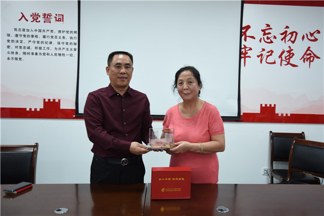唐友明院长为田玉玲主任赠送纪念品