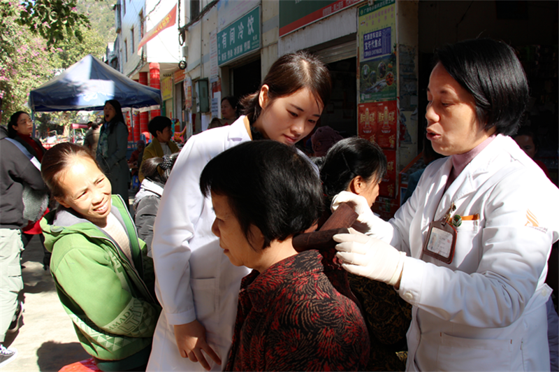 作为内科第二党支部书记的她,定期组织开展“健康科普宣教”为主题的党日活动;组织科室的年轻医生创建患者微信联系群、风湿病病友会,为更多的患者讲解壮医药防治风湿病特色和优势,风湿病防治知识,养生的注意事项、解答疑问等;组织支部内的党员同志先后到金秀瑶族自治县、罗城仫佬族自治县、龙州县、德保县、靖西、天等、隆安、武宣、龙胜各族自治县等30余个县市开展义诊、查房、学术讲座、健康咨询,守护患者健康。深受患者的欢迎,累计服务30000多人次。她时常对年轻医生说:“虽然我工作很辛苦,但很快乐,快乐来源于我对壮医药事业执着的追求,而治好病人是我最大的快乐。我希望你们与我一样找到治好病人获得的快乐。”她就是这样时刻发挥共产党员的先锋模范作用,在平凡岗位上真情奉献,无怨无悔。