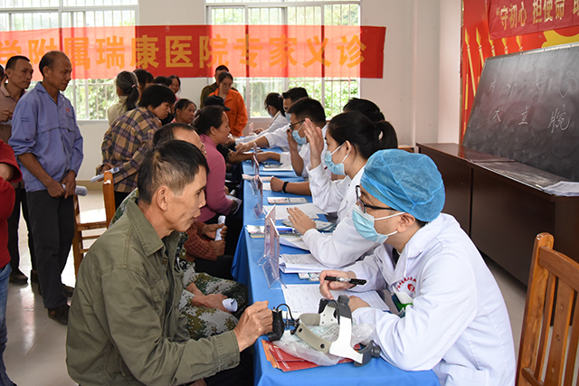 据统计,帮扶工作开展至今,附属瑞康医院到定点村开展的健康扶贫活动共免费诊疗近1300人次,免费发放药品650余份。其中医院不定期组织专家入屯免费上门诊疗,多次免费带患者到医院治疗,在广西脱贫攻坚战中注入瑞康力量。