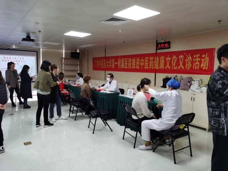 为加强疫情防控期间,居民群众和职工的身心健康教育,营造健康和谐的社会环境,11月4日,一附院治未病中心廉永红、陈舒,脾胃病科杨成宁、康复科苏晗、骨一科护士长陈静等17位医护专家受邀赴广西桂网有限公司,为员工们送上中医药健康义诊,现场共服务200余人次,受到一致好评。