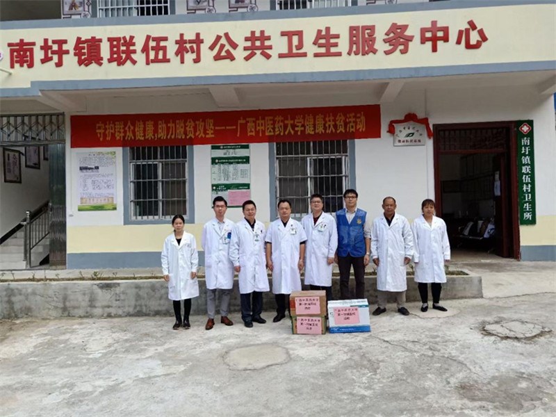 11月5日,一附院第六批“轮值村医”党员专家团队仙葫院区综合办公室江现强、壮医针灸科李仁锋、营养科江涛、仙葫院区急诊科高玉广来到一附院定点扶贫村隆安县南圩镇联伍村继续开展健康扶贫活动,为当地村民诊治,为村医送学。
