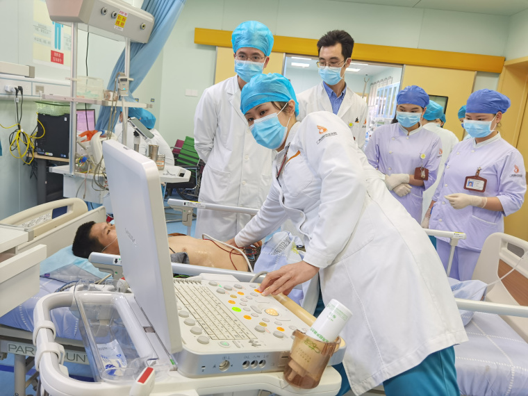 超声科携带床旁超声仪器,为患者第一时间现场检测