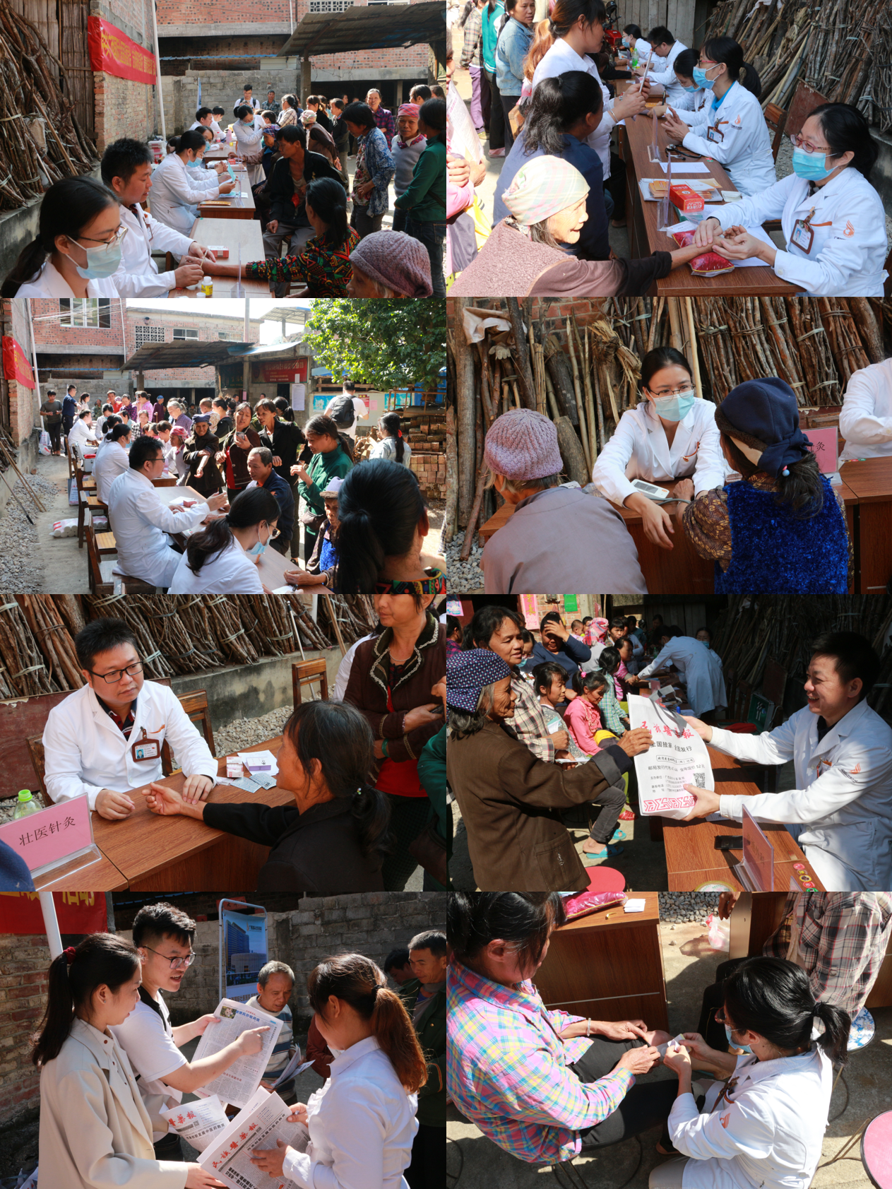 在多积屯,医院党委给21户贫困户送上慰问品,还为乡亲们开展了健康扶贫义诊和健康知识宣教活动,让百姓能足不出户就享受优质医疗服务。内分泌代谢病科、心病科、脑病科、风湿病科、脾胃肝病科、壮医经典病房、普通外科的9名党员医生为前来问诊的乡亲们开展测量血压、把脉开方、针灸治疗、提供健康咨询等活动,专家们耐心细致地了解村民的身体健康状况,为他们分析病情、答疑解惑,同时提供正确的用药指导、饮食指导等。《民族医药报》编辑部还为大家免费派发了《民族医药报》和《我的用方体会》《我的疗疾手记》等书籍资料80余份,宣传普及健康知识,增强大家的卫生健康意识。