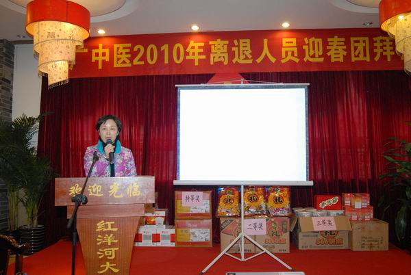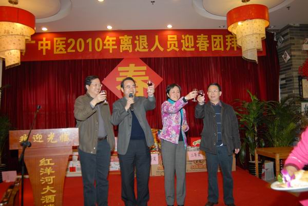 在一年一度的新春佳节到来之际,一附院于2010年1月27日下午在红洋河酒店举行全院离退休职工迎春团拜会,学院离退处领导、医院党政领导与300多位老同志欢聚一堂,回眸过去,共谋发展。