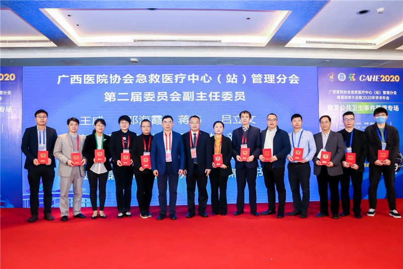一附院仙葫院区急诊科主任邓海霞当选为广西医院协会急救医疗中心(站)管理分会副主任委员(左五)