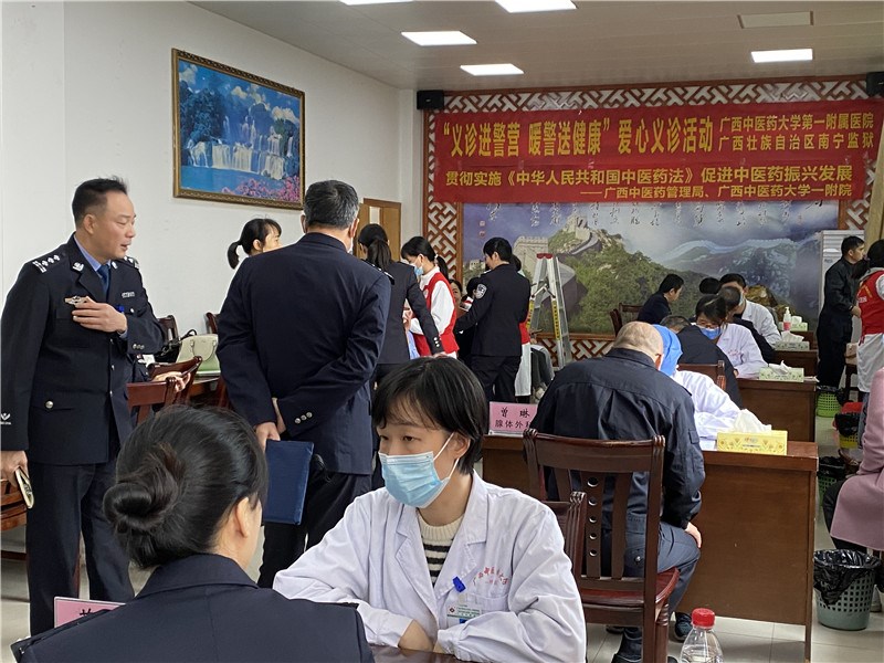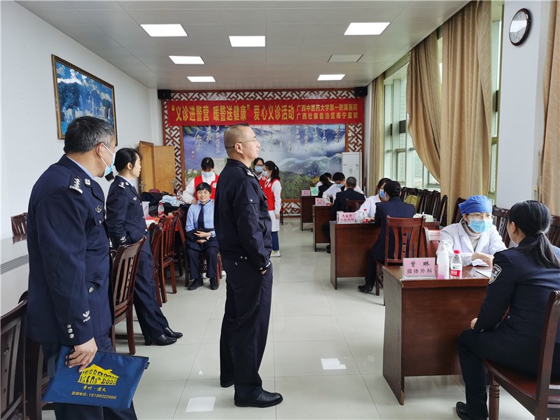 为了保障一线公安干警的健康,12月1日,一附院康复科刘宏业,腺体外科曾琳、妇科蔡菲菲、肝病科姚凡及我校的学生志愿者等12位医护专家受邀前往南宁监狱局,为狱警们送去健康与关爱。