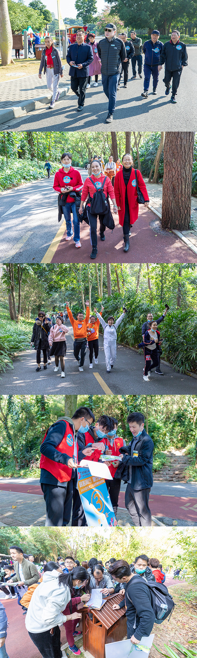 冬日的南宁阳光灿烂,鸟语花香。为了丰富职工的业余文化生活,加强职工之间的沟通与交流,增强广大职工的身体素质,推动全民健身活动蓬勃开展, 12月5日,附属瑞康医院在青秀山风景区开展“同心同行 健行健康”在职工会会员健步走活动。医院院长唐友明,党委书记高宏君,党委副书记、副院长、工会主席陈日兰,副院长、总会计师庞刚,纪委书记黄建民,副院长宋策以及全院各科室共45支参赛代表队队员、拉拉队队员、工作人员、职工家属1200余人参加活动。