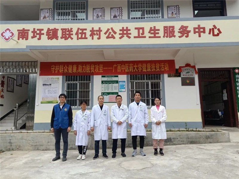一附院第十一批“轮值村医”党员专家团队与医院驻联伍村“第一书记”兰庆同、联伍村村医合影