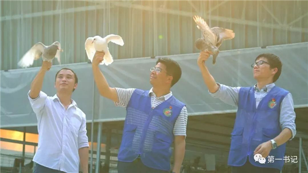 联伍村集体经济肉鸽养殖产业示范园,(右一)为一附院驻联伍村第一书记兰庆同