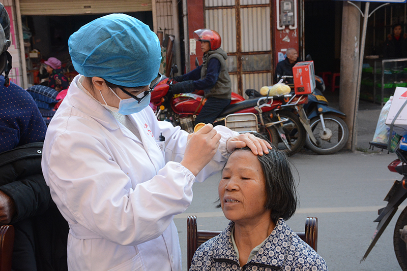 活动中,专家们耐心地为每一位前来问诊的村民分析身体情况,提出了合理的治疗方案和健康医疗指导,对病情较为严重的村民留下联系方式,嘱咐他们尽早到医院做更详尽的检查和治疗。当天,除了免费测量血压,村民们还免费体验了雷火灸以及推拿等中医特色疗法。