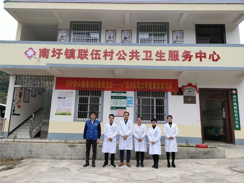 一附院第十四批“轮值村医”党员专家团队与一附院驻联伍村“第一书记”兰庆同、联伍村村医合影