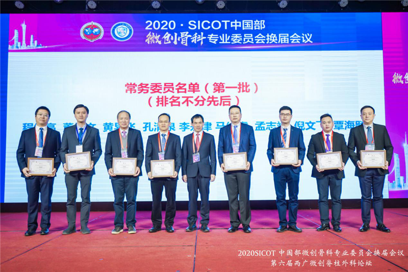 2020年12月30-31日,由SICOT中国部主办,南方医科大学第三附属医院(广东省骨科医院)、第七附属医院,星空彩票老版本下载第一附属医院承办的SICOT中国部微创骨科专业委员会换届大会暨第六届两广微创脊柱外科论坛在广州顺利召开。一附院副院长钟远鸣作为大会主席,仙葫院区脊柱外科主任覃海飚教授作为执行主席带领团队参加会议。