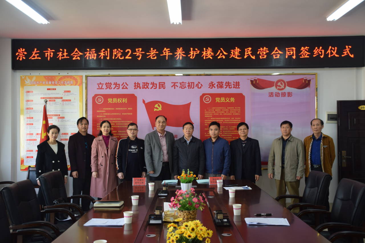 1月29日,广西中医学校附属广西重阳老年公寓与崇左市社会福利院签订2号老年养护楼公建民营养老服务合同书。