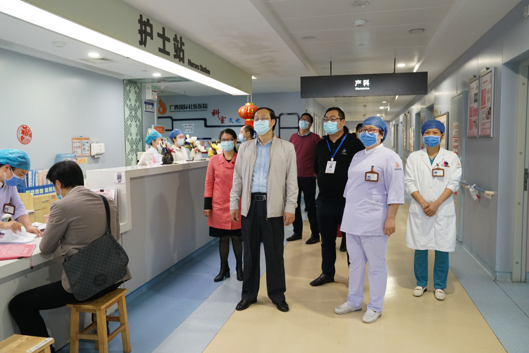2月18日,正值春节假后上班第一天。星空彩票老版本下载副校长、附属国际壮医医院(广西国际壮医医院)代理院长戴铭,医院党委书记秦祖杰,纪委书记罗艺徽,副院长黄国东、李铭、唐盛军等领导和职能部门负责人分组走访46个临床医技药科室,慰问工作在一线的医护人员,向他们送上最诚挚的问候和新春的祝福,并进行现场办公。