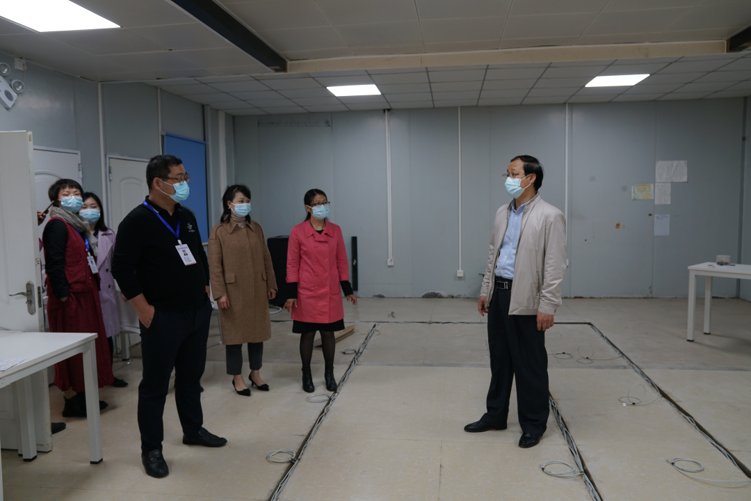 在住院医师规范化培训基地,领导们到示教室、自习室、多媒体教室等处进行了参观,查看教学用设施设备的采购安装进度,详细了解实习学生的学习、生活状况,指示相关科室积极推进基地项目建设。