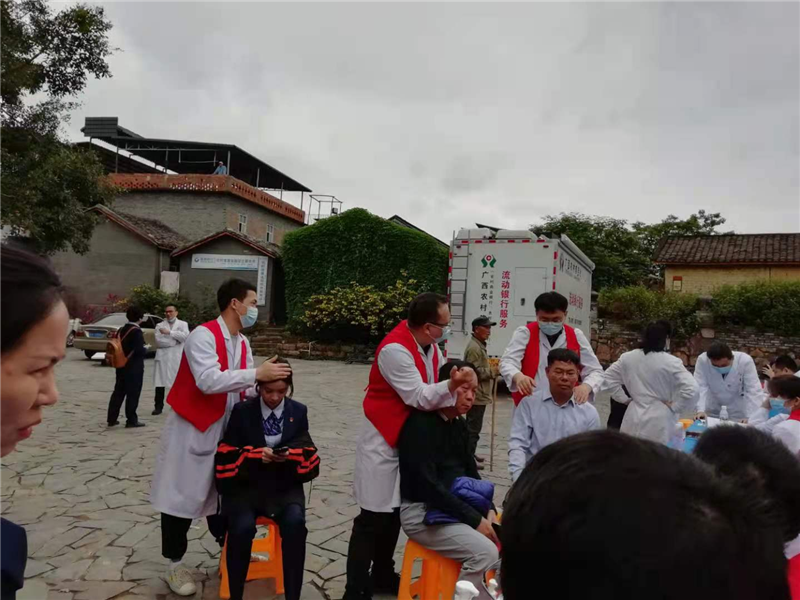 4月9日,应南宁市西乡塘区石埠卫生院邀请,附属瑞康医院医疗服务部组织外科第二、第四党支部,门急诊、健康管理第二党支部,内科第四党支部等多名党员志愿者,赴石埠三民艺术村开展党员医护人员义诊活动,践行“为群众办实事”,充分发挥基层党组织的战斗堡垒作用和党员的先锋模范作用,以实际行动践行党的群众路线,发挥所长服务群众,以实际行动献礼建党100周年。