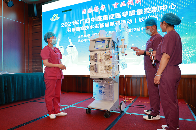 附属瑞康医院作为广西中医重症医学质量控制中心主任单位,全程策划筹备本次活动,党委委员、副院长韦思尊出席活动,近20名重症医学专家通过授课、实操等形式围绕“重症患者CRRT理论与实践、规范重症患者CRRT诊疗及操作流程、提高CRRT各环节精准化质量控制”的主题为来自全区各地市重症医学、血液透析、肾病科等学科约120多专家、学者进行培训。