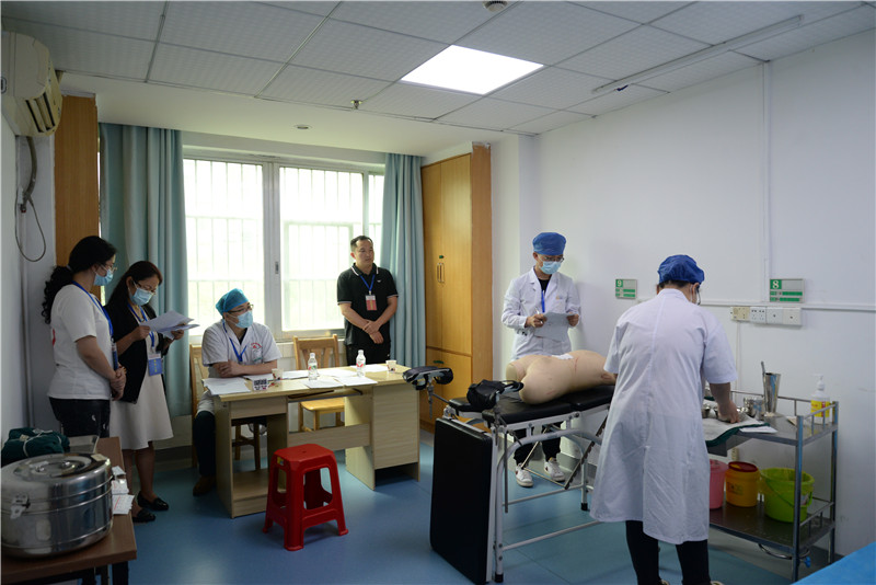 招收考核当日,根据疫情防控要求,本次考核对考生进行流行病学调查,对考生座位间距、签到候考间距、开设考生专用通道及考生专用电梯等做了详细的部署,考核现场备有卫生服务站及紧急隔离区;同时要求全体考官、考生、考务人员戴好口罩、进行手部卫生消毒、测量体温正常方可进入考场。本次招收考核分为初试和复试两部分,初试为理论测试、职业能力倾向测试,分别采用附属瑞康医院现行的医视界医学考试系统和阳光心健心理测评系统;复试包括技能测试和综合能力测试,分设9个考场。技能测试题涵盖中、西医内容,涉及内科基本技能操作、外科基本技能操作、中医专项技能和急救基本技能。同时,面试考官还需对考生的综合能力进行考量,并对考生职业倾向进行测评,最后由技能测试分数和综合能力测试分数组成该考生的复试成绩。最终录取结果将按照上级相关规定,经综合考量后,录取名单依照程序公示并上报审核后发布。