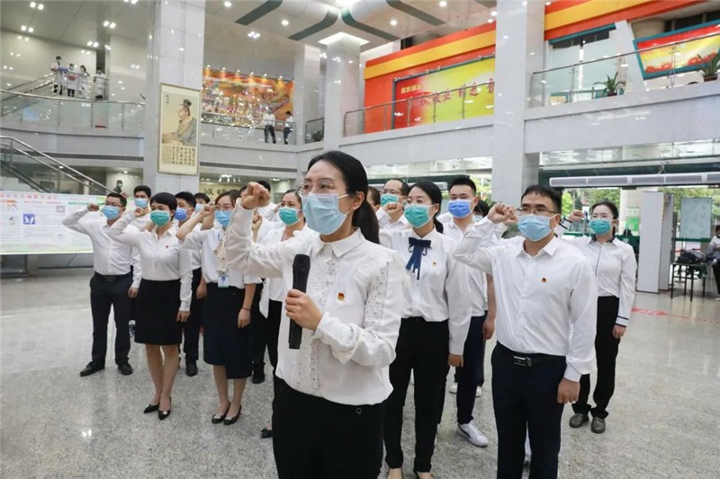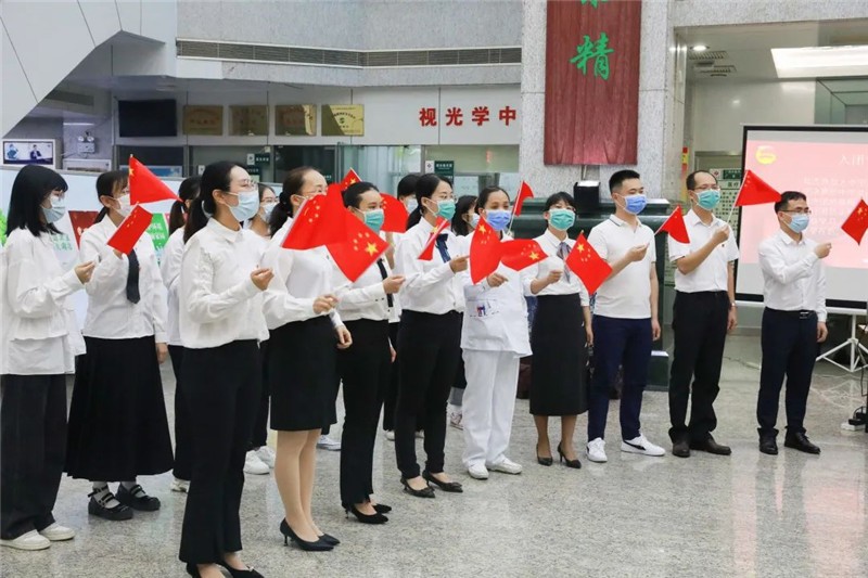2021年是中国共产党成立100周年, 五四运动102周年,为引导广大团员青年铭记历史、牢记使命,展现一附院青年职工良好的精神风貌,团委在东葛院区门诊大堂举行五四快闪红歌会主题团日活动暨2021年院级“青年先锋”表彰会。医院党委副书记、副院长钟远鸣出席活动,青年代表40余人参加本次主题团日活动。