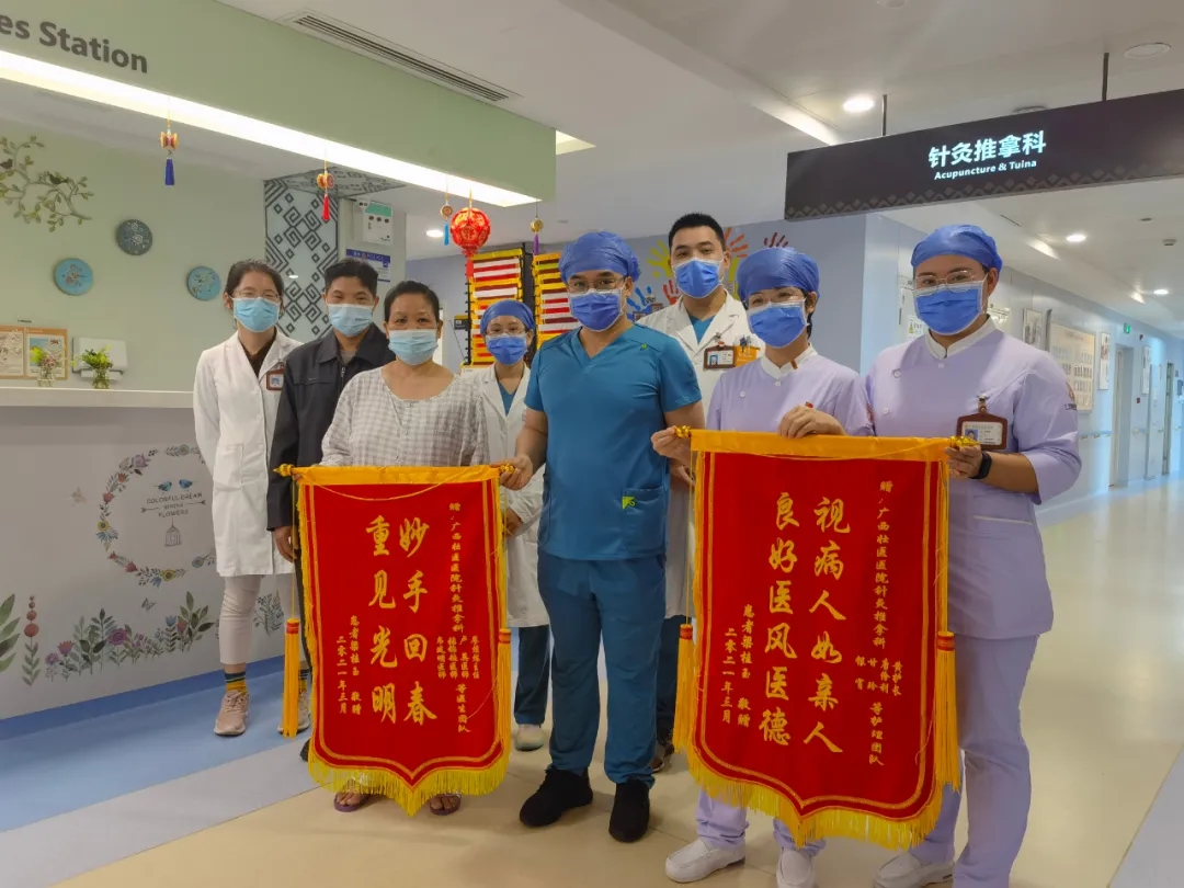 为了表达欣喜、感激之情,以及对“针灸确实能治病”的重新认识,出院前,夫妻二人特地为针灸科医护人员送上两面锦旗。