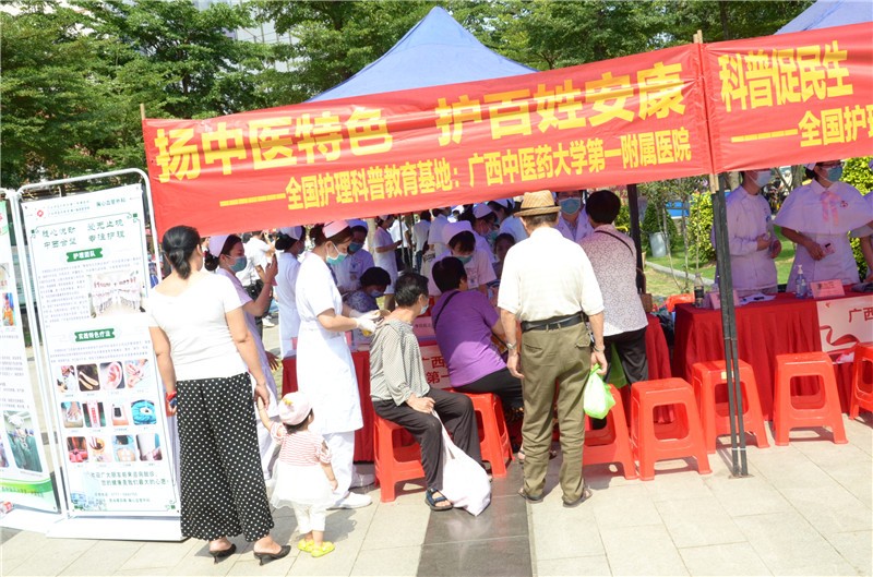 应自治区卫生健康委员会的邀请,5月11日,一附院由外联拓展部组织护理若干人员,由护士长郭艺贞带队,赴南宁市群众艺术馆开展义诊活动,以送健康的形式迎接即将到来的“512国际护士节”。