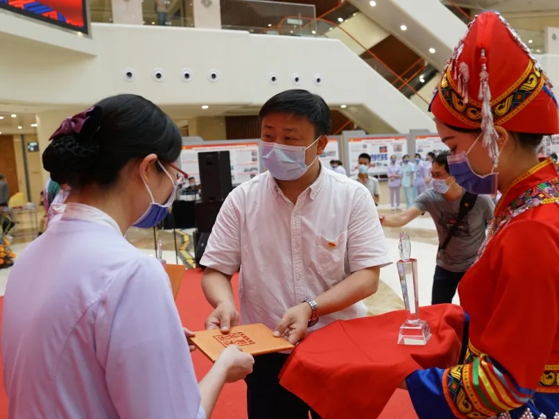 奖优扶强树标杆。各项比赛获得优异成绩的队伍,在“传承红色基因 担当壮医使命 守望照护愿景”活动庆祝典礼当天,荣获表彰。院党委书记秦祖杰、副院长黄国东为其颁奖,并为新入职的护士授表,向长期坚守护理岗位的国壮护士致敬、颁发荣誉证书。