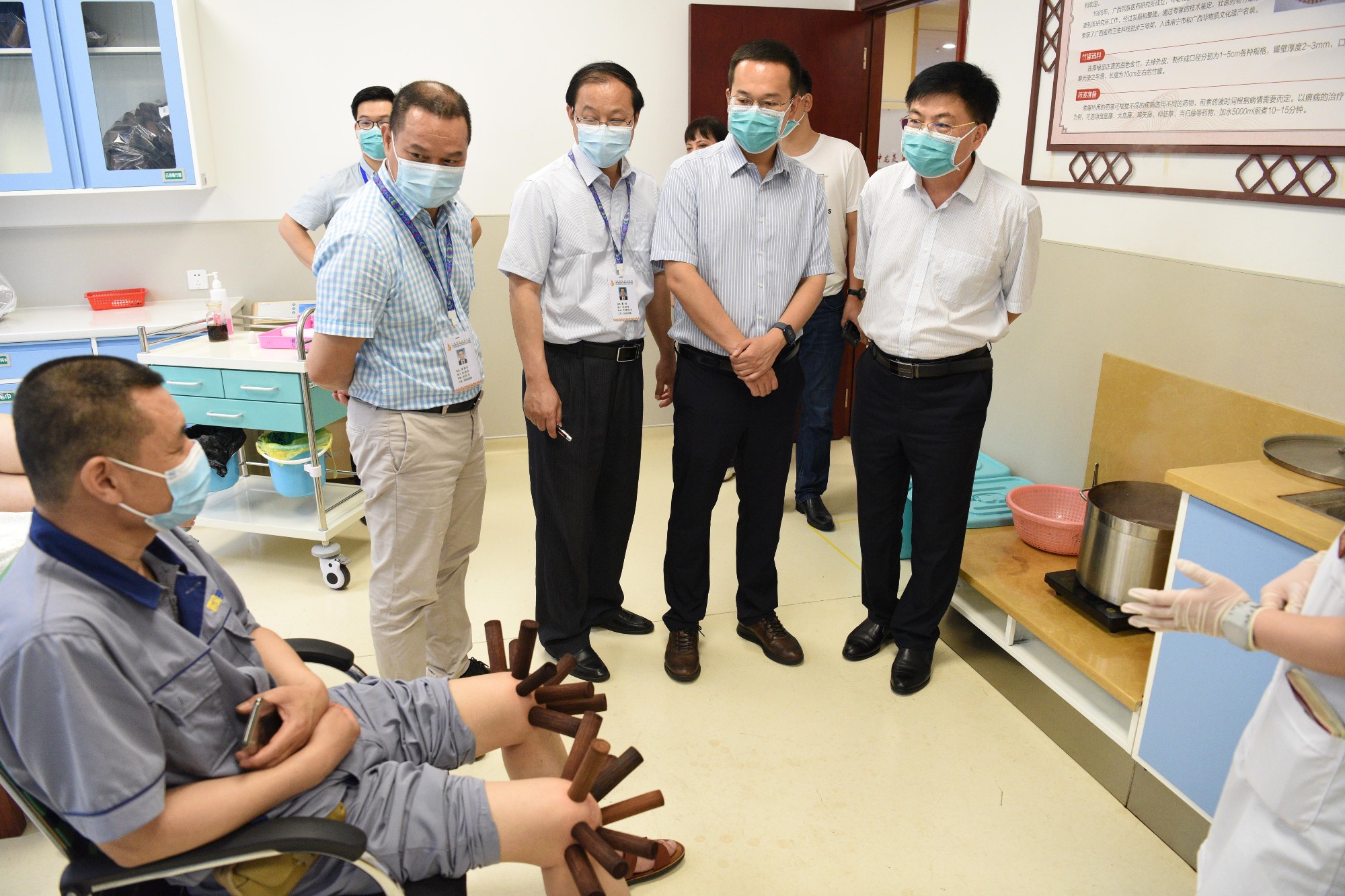 国家中医药管理局调研组到我院考察调研 来源:附属国际壮医医院 作者:策划拓展部 日期:2021-05-14 点击数: 次 分享到: 5月12日上午,国家中医药管理局规划财务司综合与审计处处长程强一行,在自治区中医药局规划产业处处长庞清的陪同下,到广西国际壮医医院实地调研指导。星空彩票老版本下载副校长、广西国际壮医医院代理院长戴铭,副院长黄国东陪同。调研组一行参观壮医药物竹罐疗法 打印正文 关闭本页