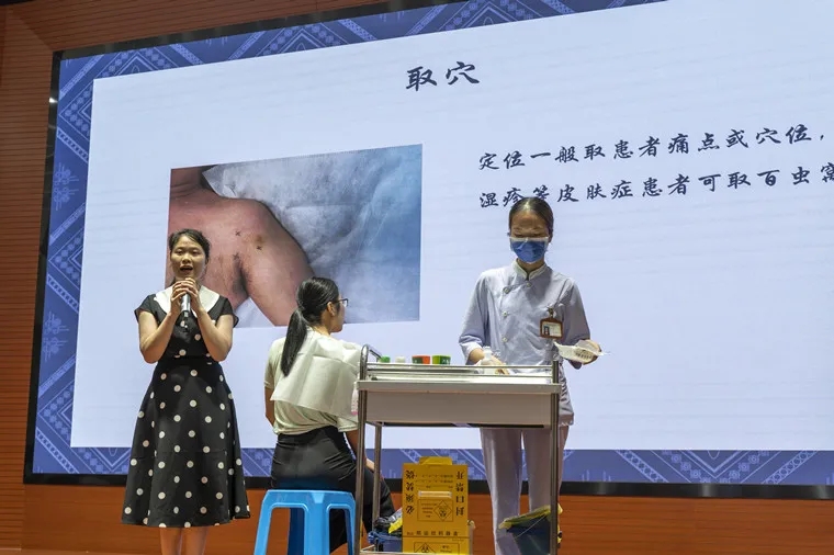 宾彩琴护士现场演示壮医水蛭疗法操作规范