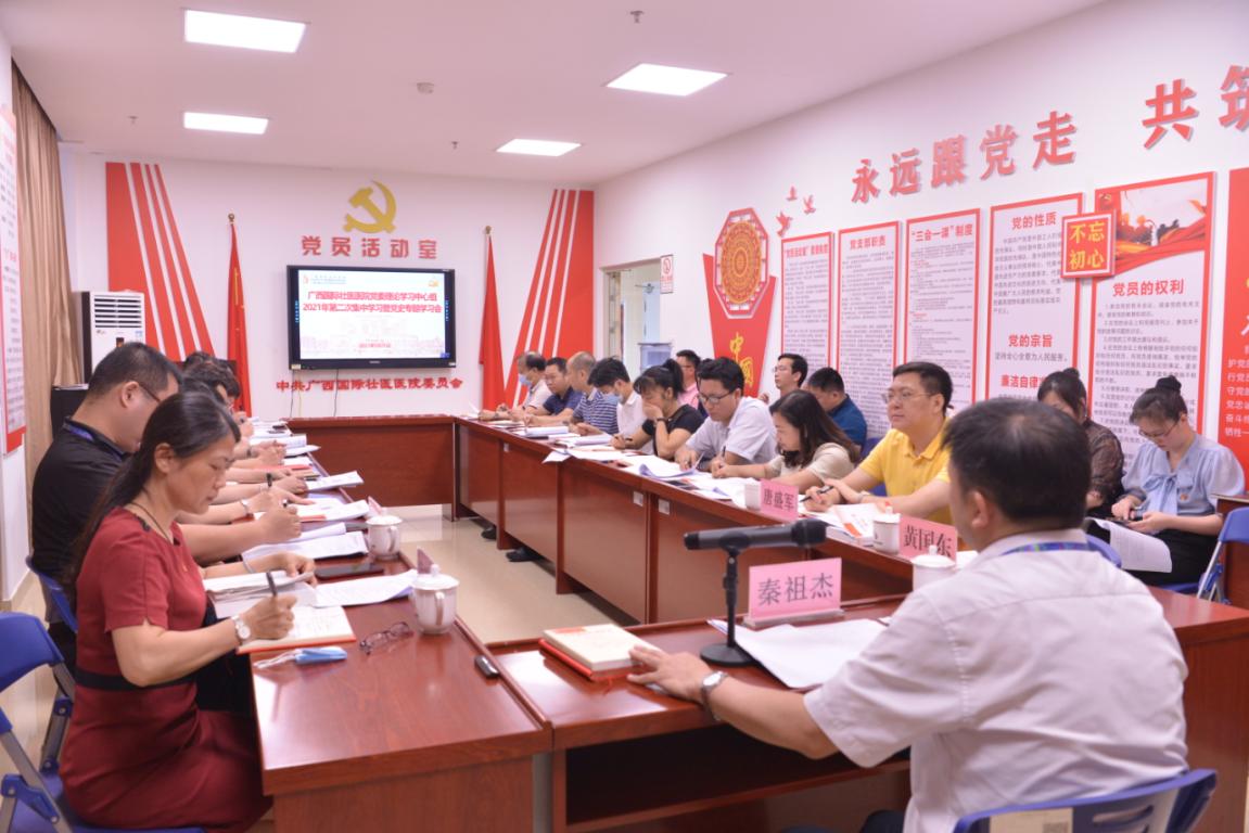 秦祖杰强调,我们要把习近平总书记在党史学习教育动员大会上的重要讲话精神和习近平总书记在清华大学、在广西、河南等地的最新讲话精神有机结合起来,理解其中的深刻内涵,做到学党史、悟思想、办实事、开新局。真正把学习成果转化为不断解放思想、守正创新的精神动力,担当实干,加强医院学科内涵建设,提升学科核心竞争力,增强科技和人才支撑力,充分发挥壮瑶药在维护和促进人民健康中的独特作用。用学习成果指导实际工作,将党建渗透到业务发展中去,充分融合党建与思想政治、医院文化、干部培养、队伍建设、人文关怀、员工管理等各项工作,为医院高质量发展提供坚强的政治保障,以优异成绩迎接建党一百周年。