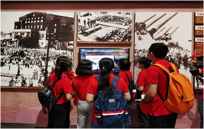 走进昆仑关博物馆,通过音频和荧屏能够切实感受当时的战争激烈状况,参观作战使用过的飞机、坦克、大炮等军事历史文物,以及碗、刀、枪、望远镜等文物,更加体会到战争的艰苦和革命先烈的英勇无畏的精神和爱国情怀。同时在参观过程中,支部书记王政林不断给大家讲解,组织委员王兵带领大家合唱《团结就是力量》。