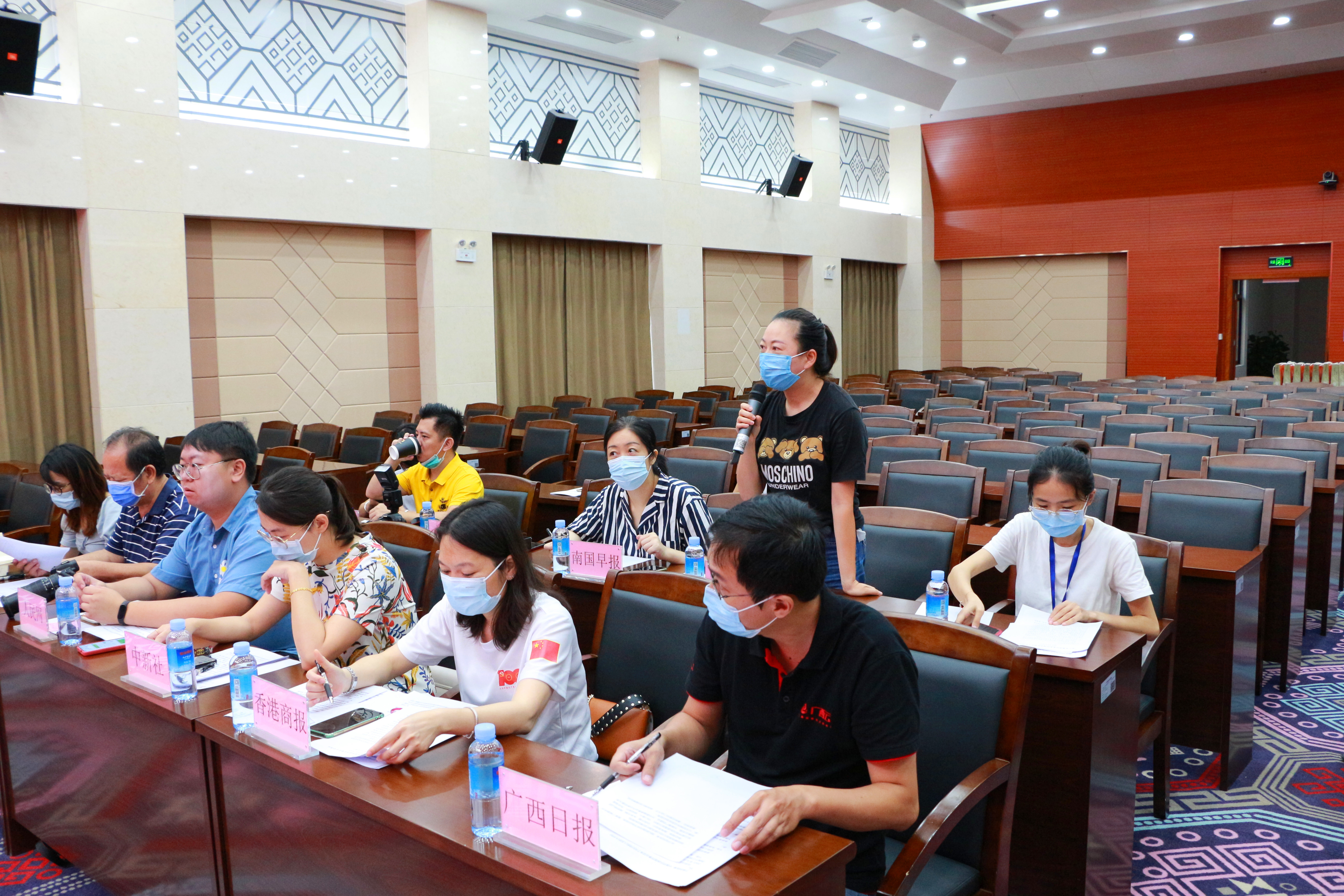 6月29日上午,在举行三级甲等民族医医院揭牌仪式前,广西国际壮医医院召开媒体见面会,人民网、中国中医药报、中新社、香港商报、广西日报、广西电视台、南宁电视台等14家中央、区、市媒体受邀参加。广西国际壮医医院党委书记秦祖杰、院长岳桂华出席,介绍医院当前发展情况与下一步发展计划,并现场答记者问。罗艺徽、李铭、唐盛军等院领导前排就坐。